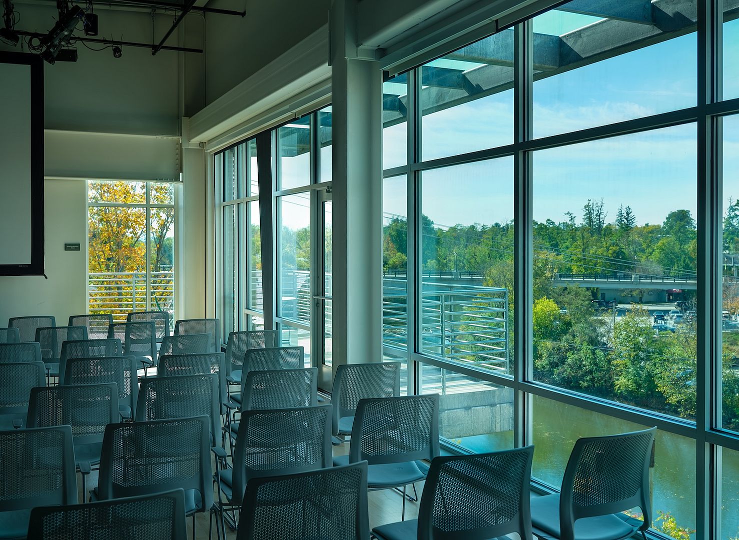 The new Annex resolves these challenges by providing dedicated spaces for performance, learning, and production. The lower level houses a fully equipped scene shop that supports expanded production capacity and technical education. The ground floor hosts the Center for Learning & Engagement, with classrooms and flexible workshop spaces that accommodate 50– 100 people. On the upper level, an adaptable performance studio with bar, lounge, and balcony seating accommodates up to 100 guests, framing views of downtown Middlebury, Otter Creek, and the surrounding bridges.