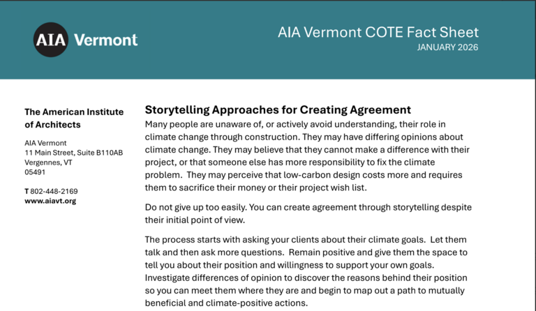 AIA Vermont's COTE Committee compiled this fact sheet as a resource to help architects and designers understand some of the key principles of designing for a low-carbon impact.